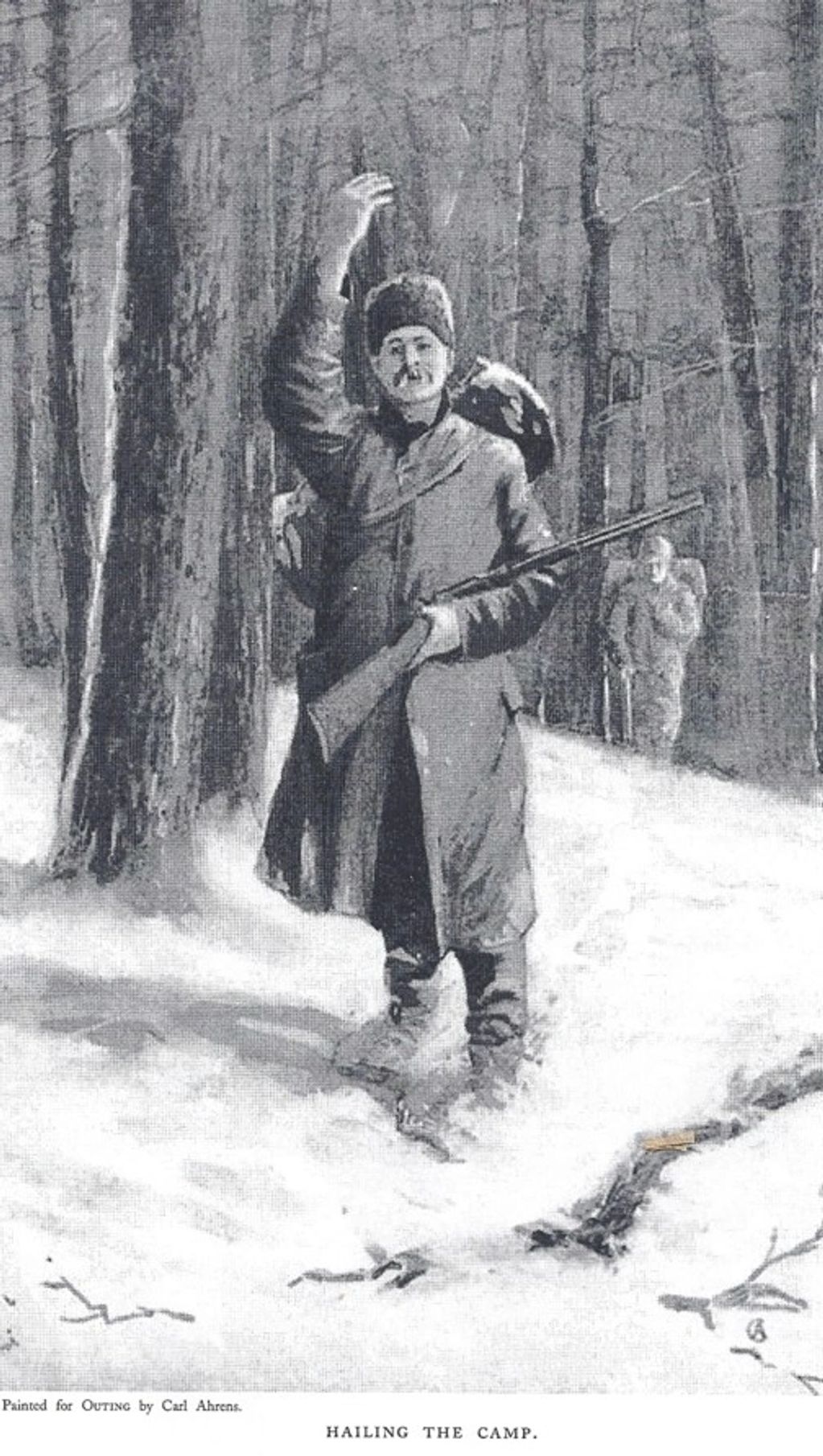 This painting, called Hailing the Camp, was commissioned by Outing Magazine in 1900.