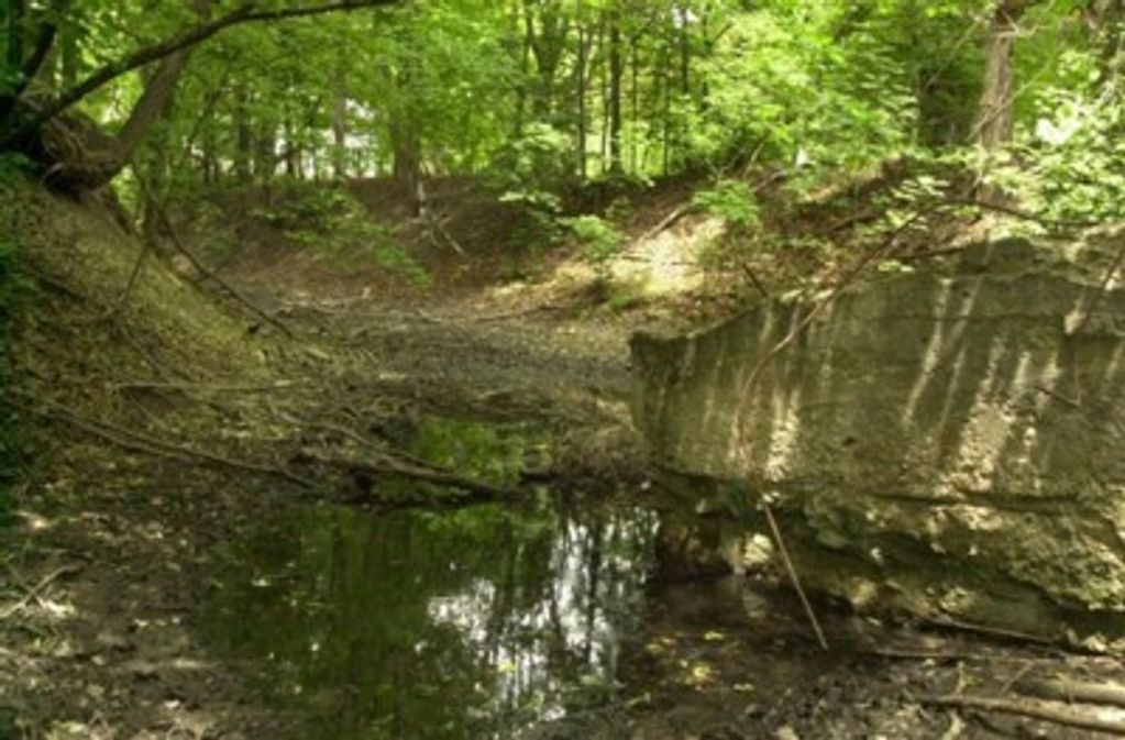 I have now obtained a historical map of Meadowvale Village. What we had thought was a creek bed was actually the mill stream. The gazebo marked the location of the Old Mill, and the dam had been right around the bend in the old stream bed. About three steps to the left and we would have seen ruins of both the mill and the dam.