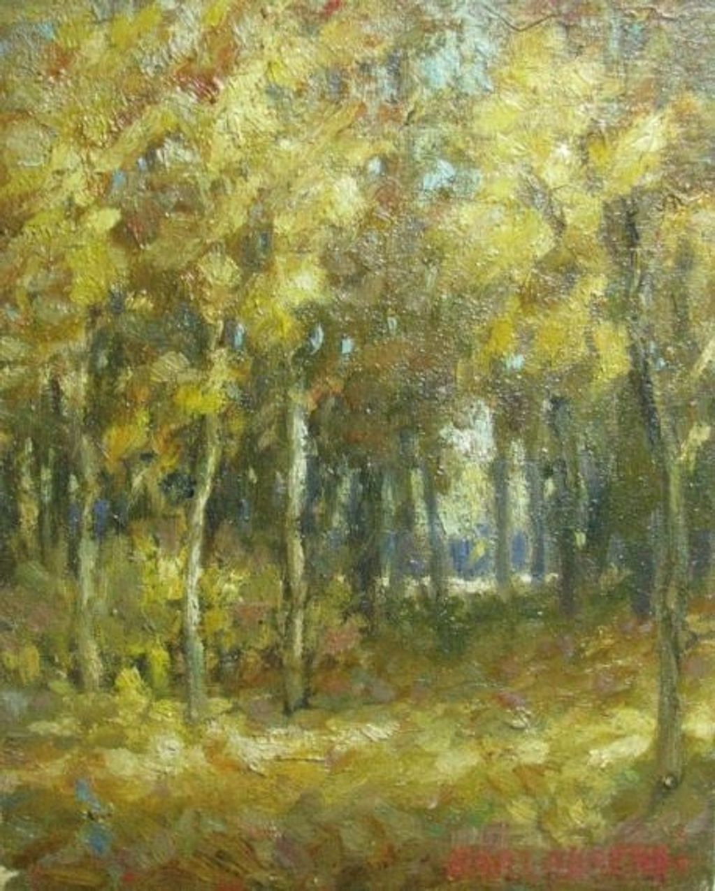 According to the notes on the back of this painting, this was among Carl Ahrens' first paintings. It is one of the few left unsigned. It is still in the family, so we are certain the work is his.